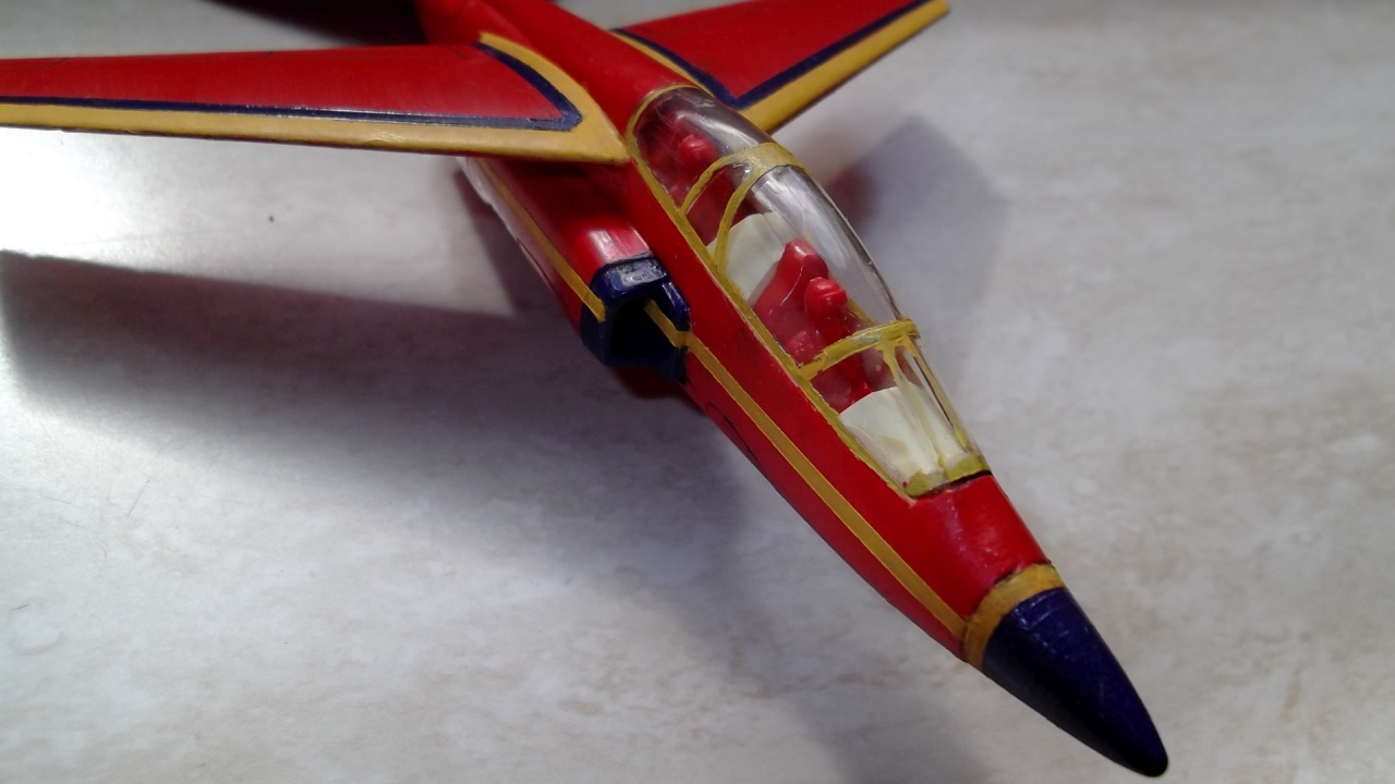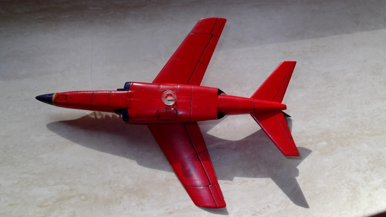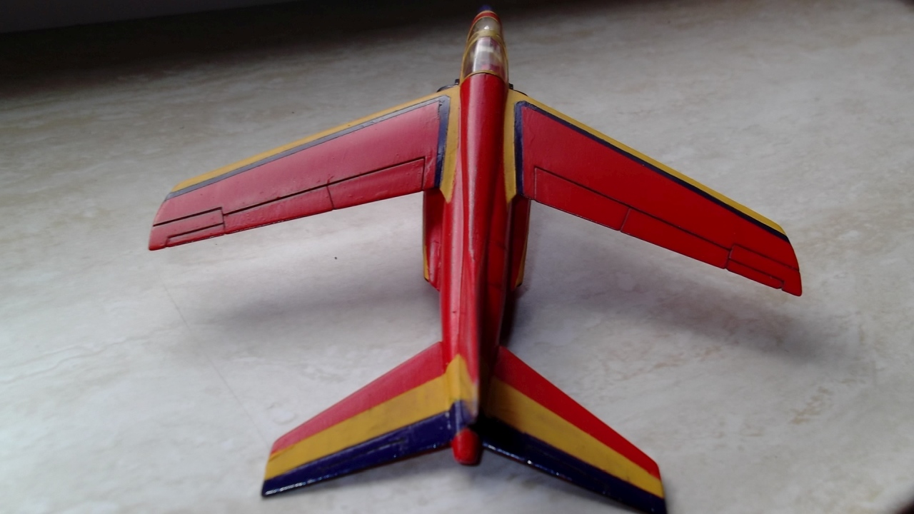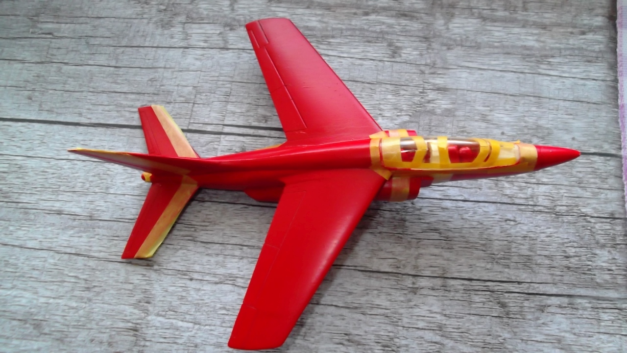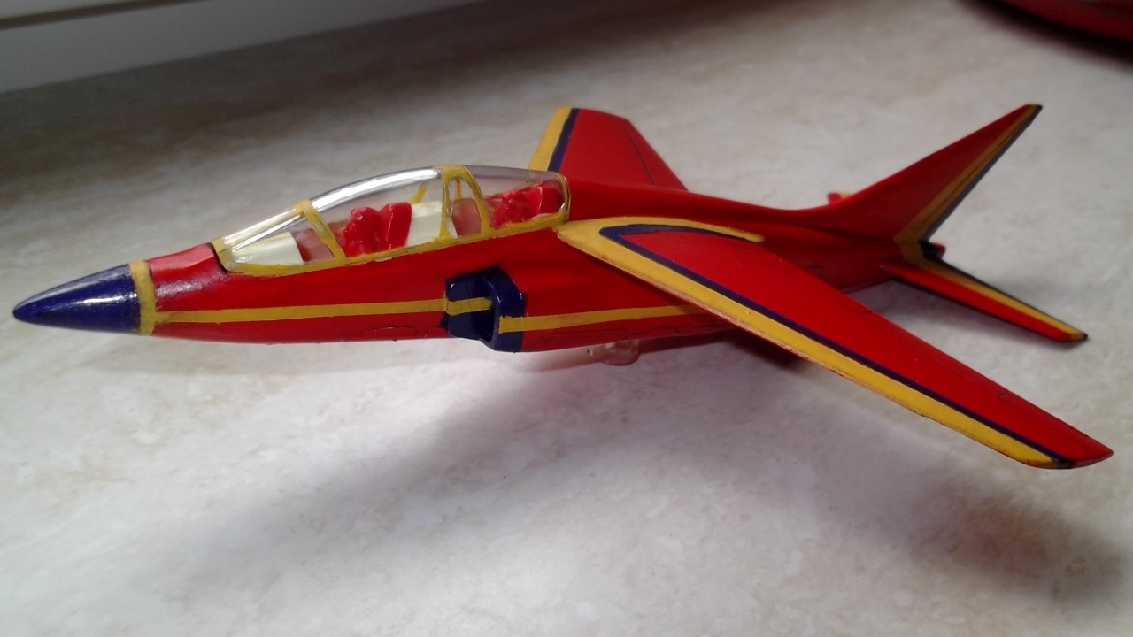 Matchbox, 1:72. Viel rot, wenig weiß, nix mit Cockpit, kaum Details, hier ging nur was in bunt. Habe zunächst das ganze Teil mal rot gemacht und weitergeschaut was so geht.