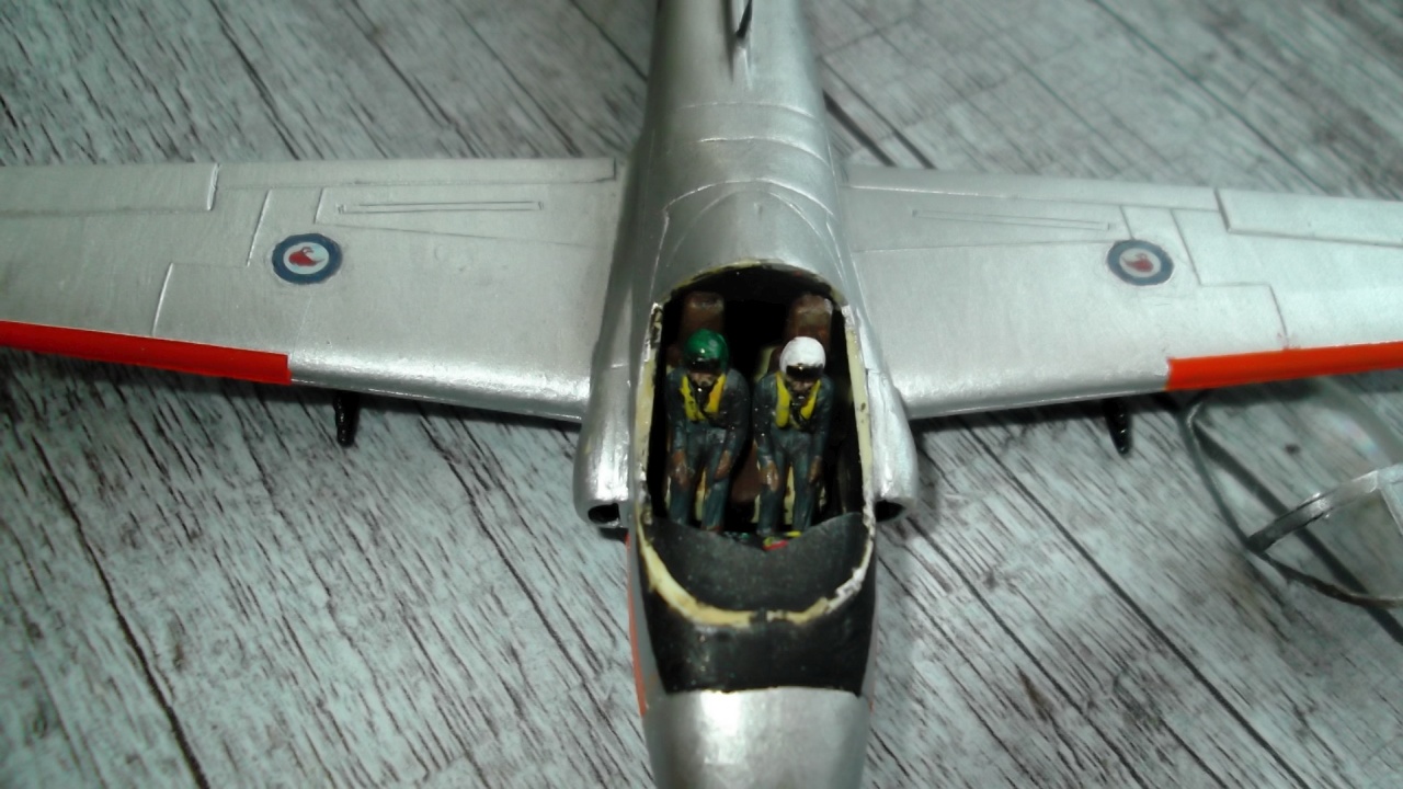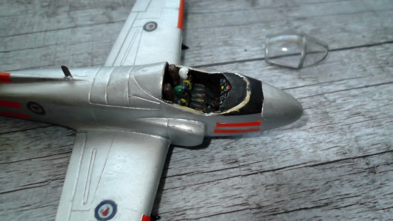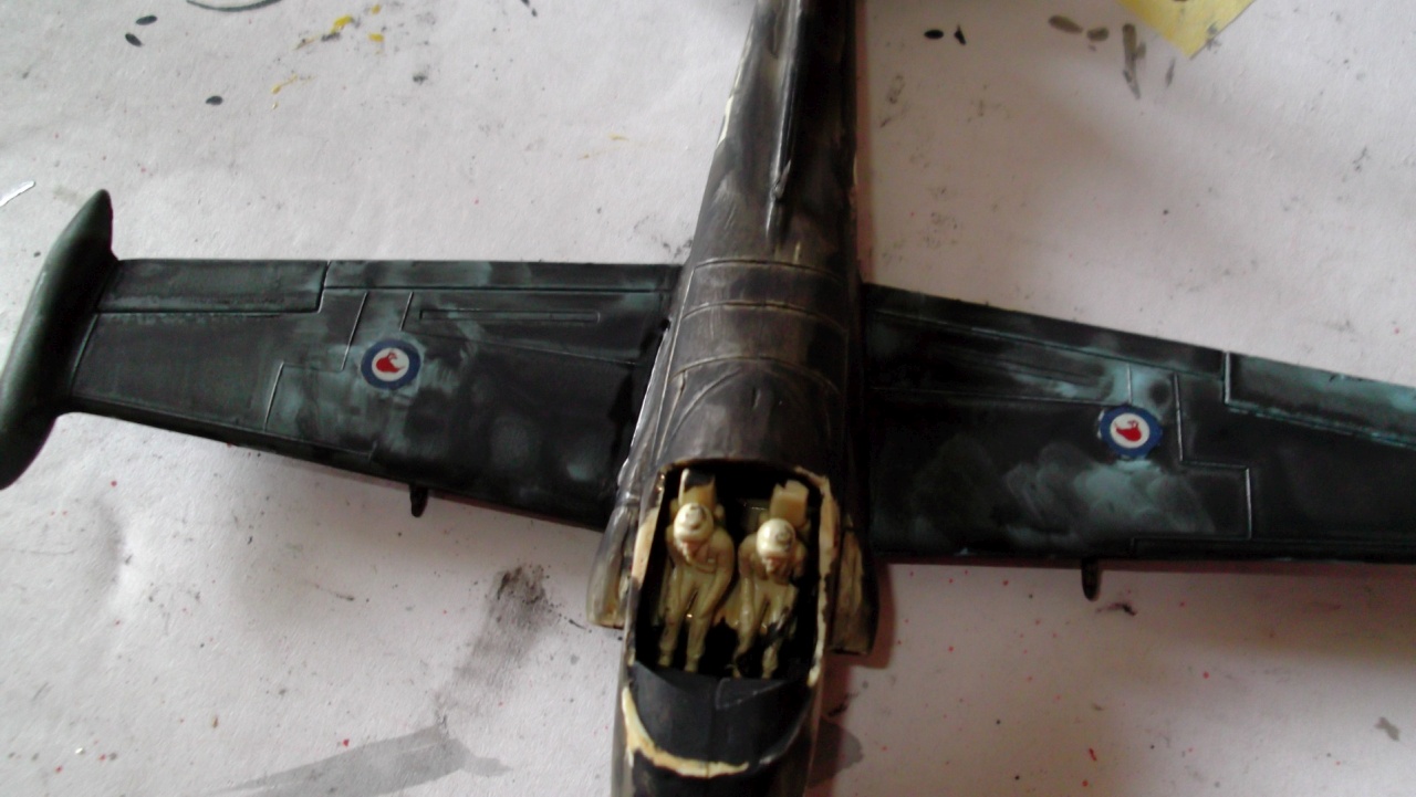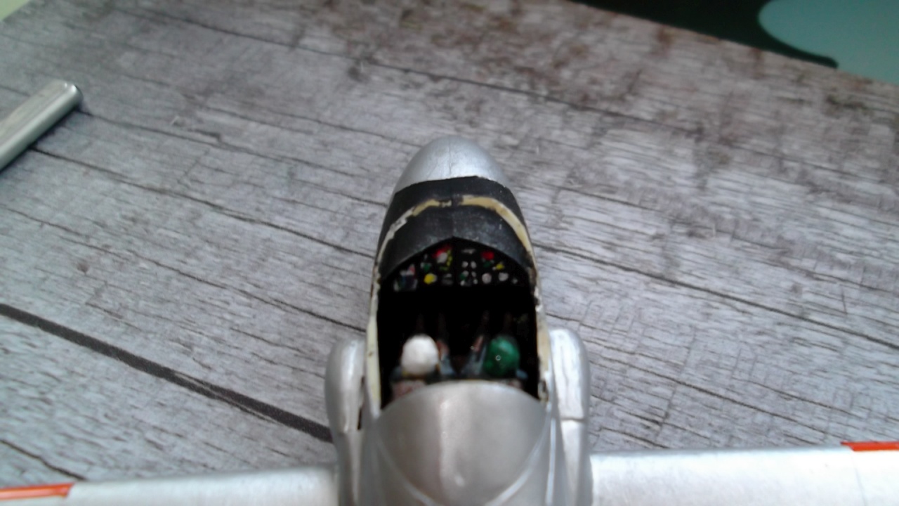 Airfix, 1:72. Schnödes graues aber sehr detailliertes Plastik. Heckleitwerk war abgebrochen. Alles wieder drangespachtelt, bemalt und mit feinem Sandpapier die Nieten bissel sichtbarer gemacht. Hier ging was am Cockpit, mein Favorit ist der Helm.