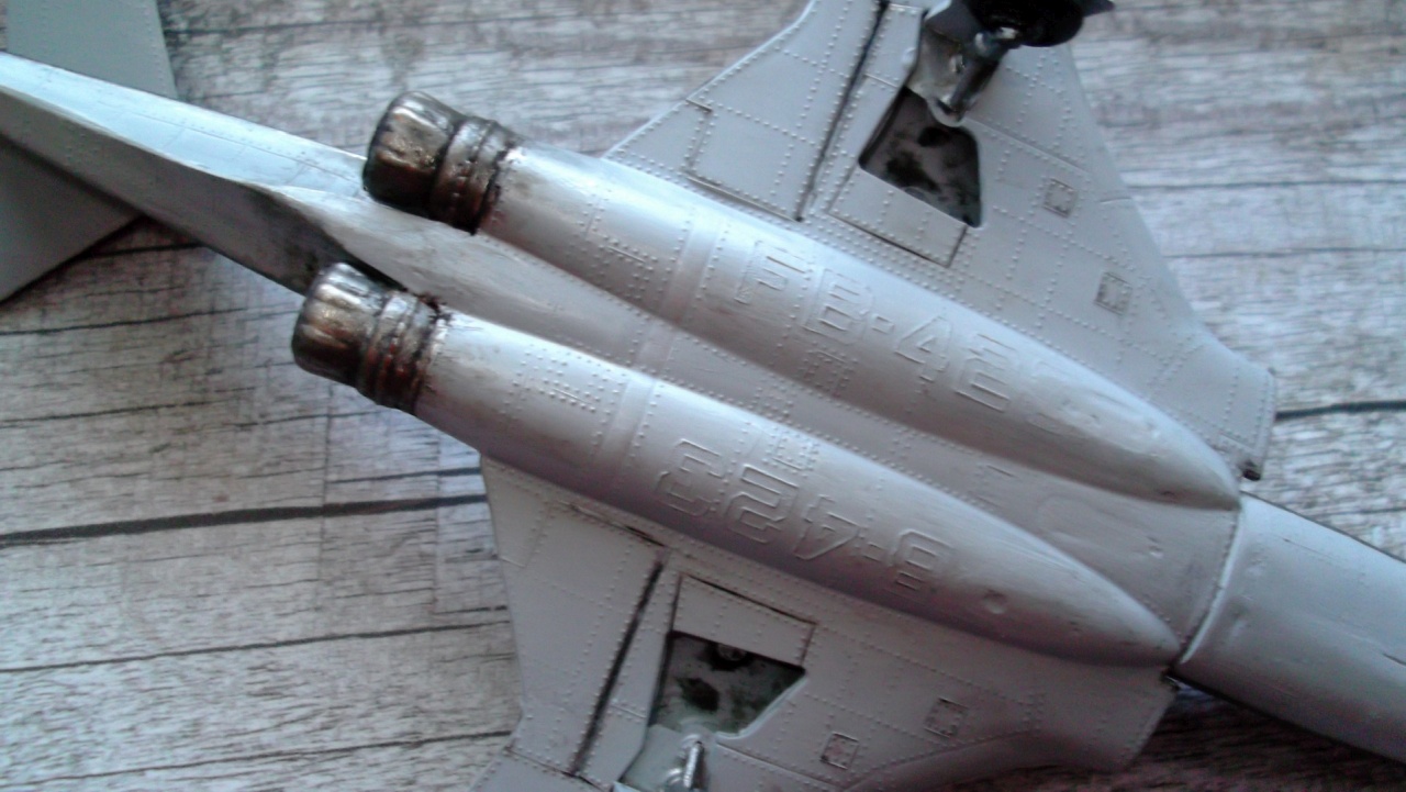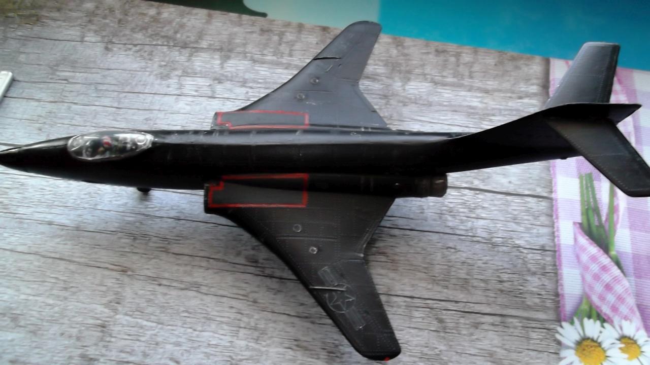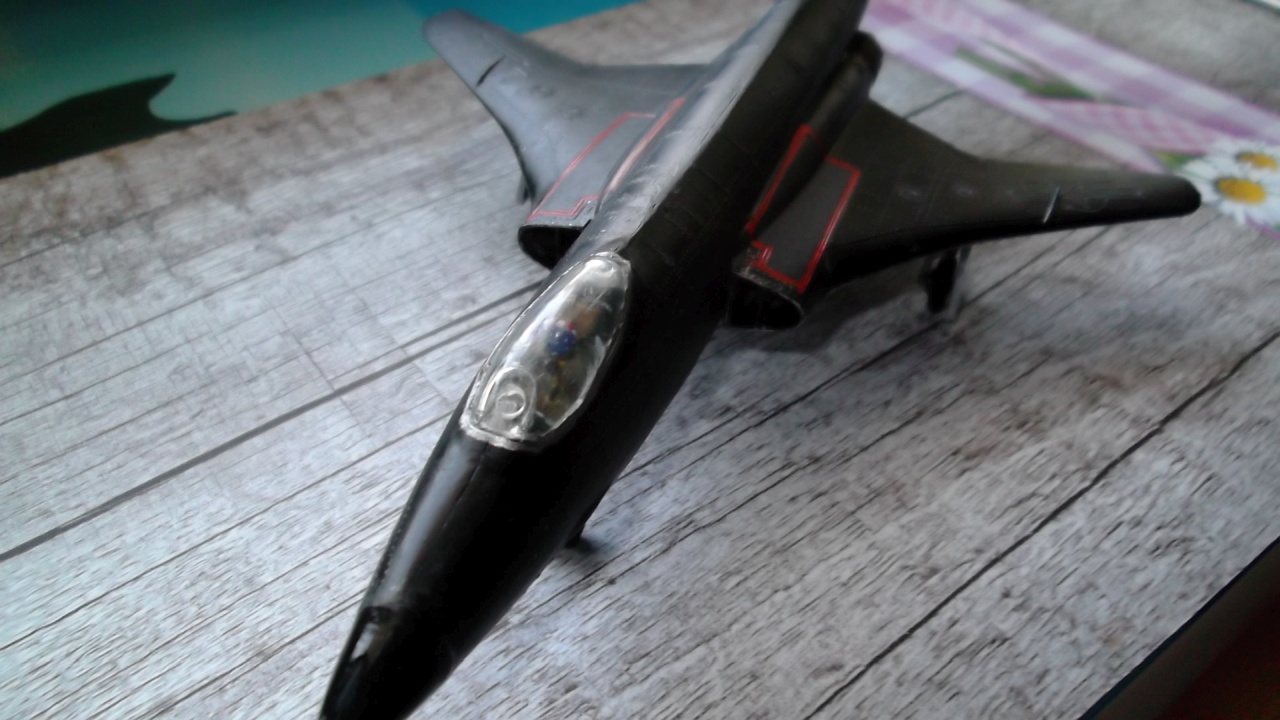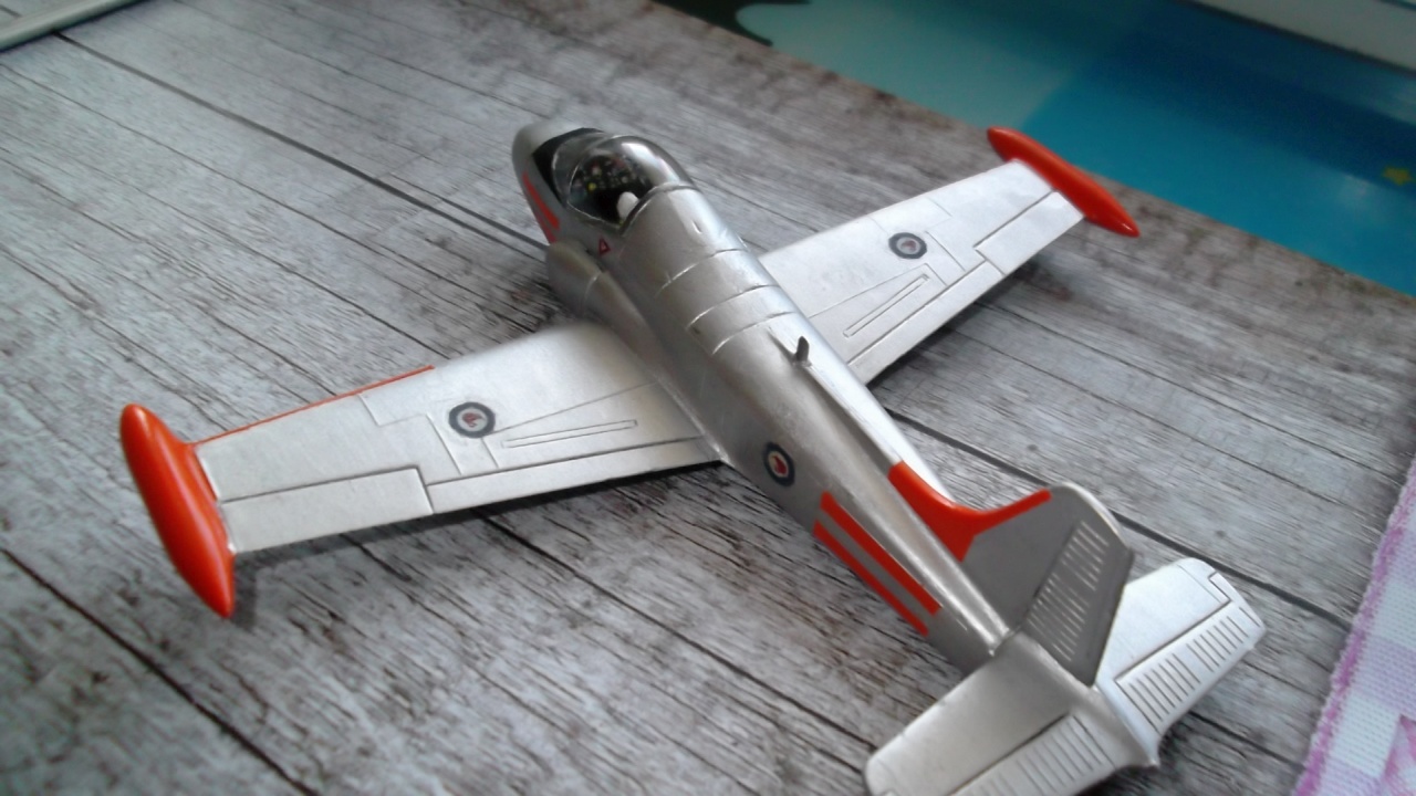 Matchbox, 1:72. Da wollte meine Mutter ein "silbernes Flugzeug", hihi. Der war ein praktischer Kandidat, Cockpit war noch offen, nur diese Raketen(?), naja, alla hopp.